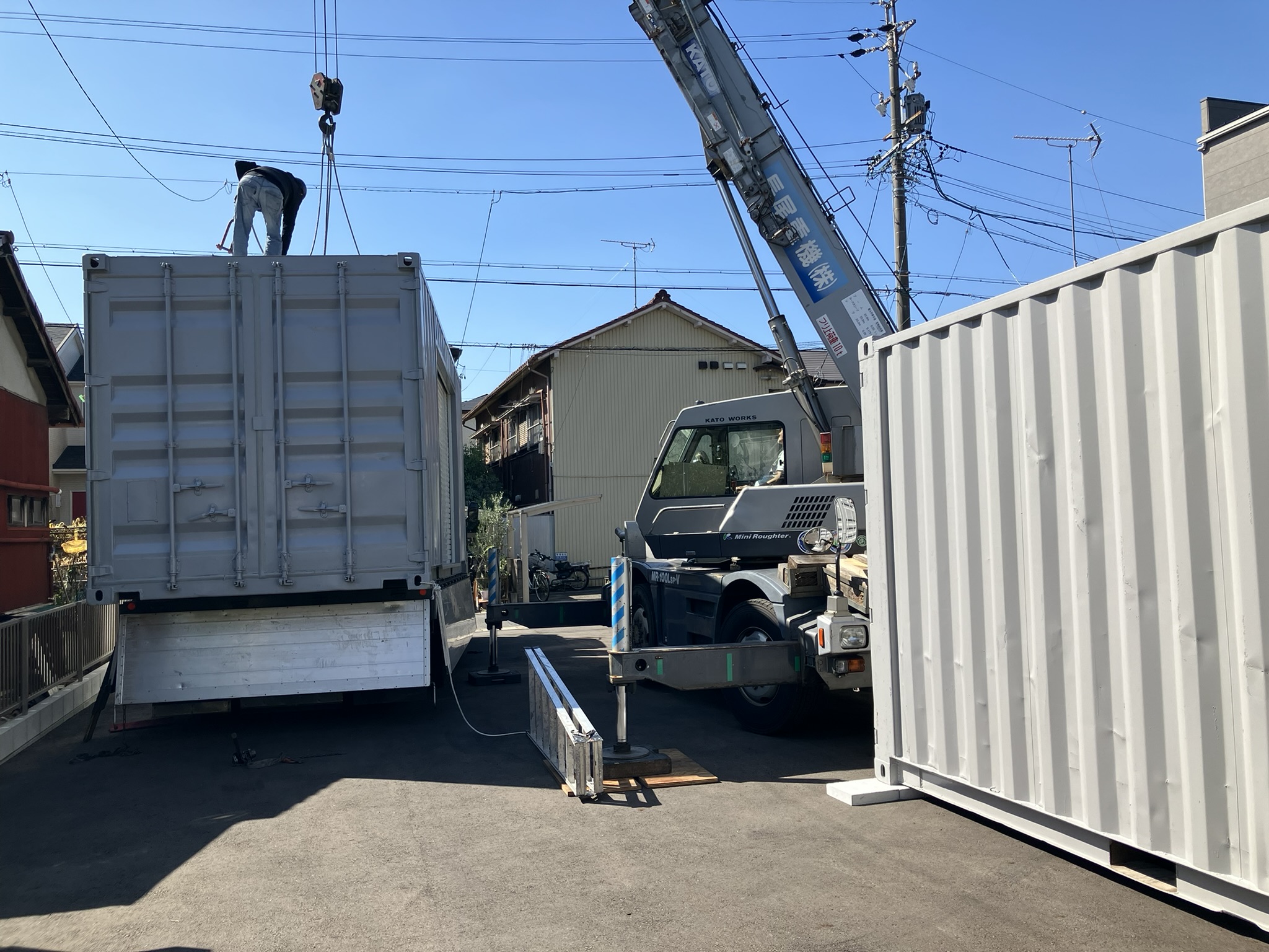 ユニック車は構造上、トラックの真横にしかコンテナを降ろせません。
