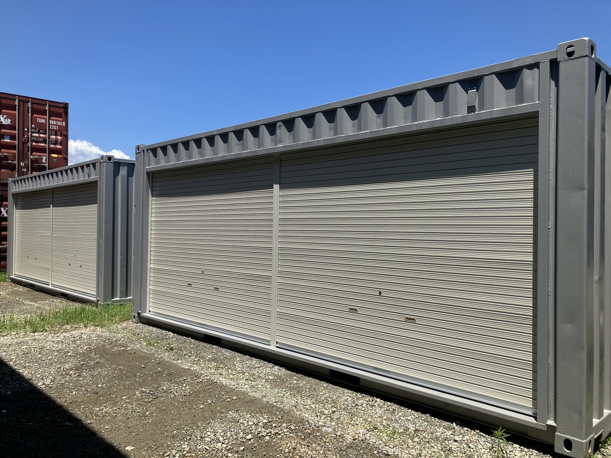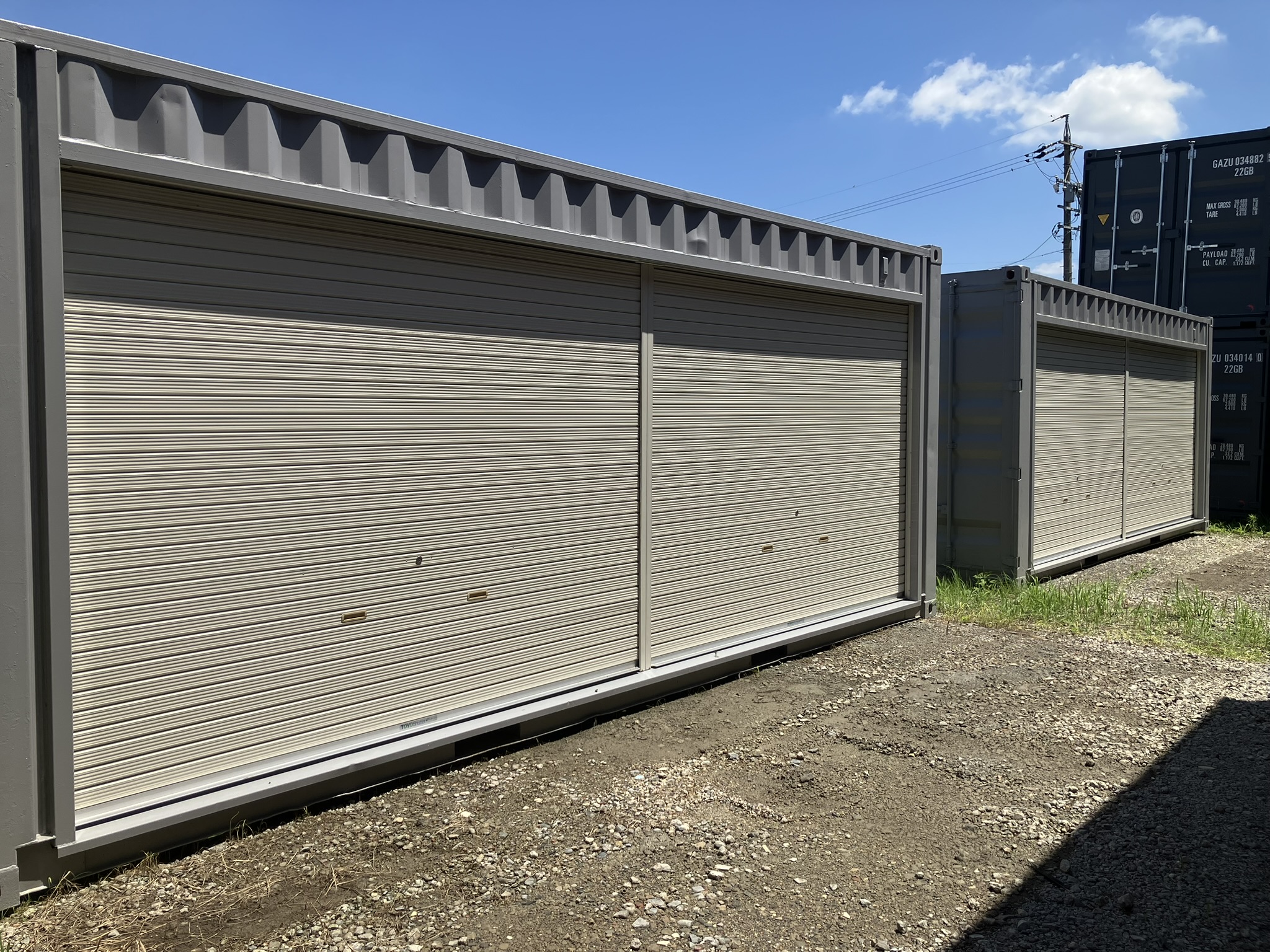 20フィート中古コンテナシャッター付き×2台