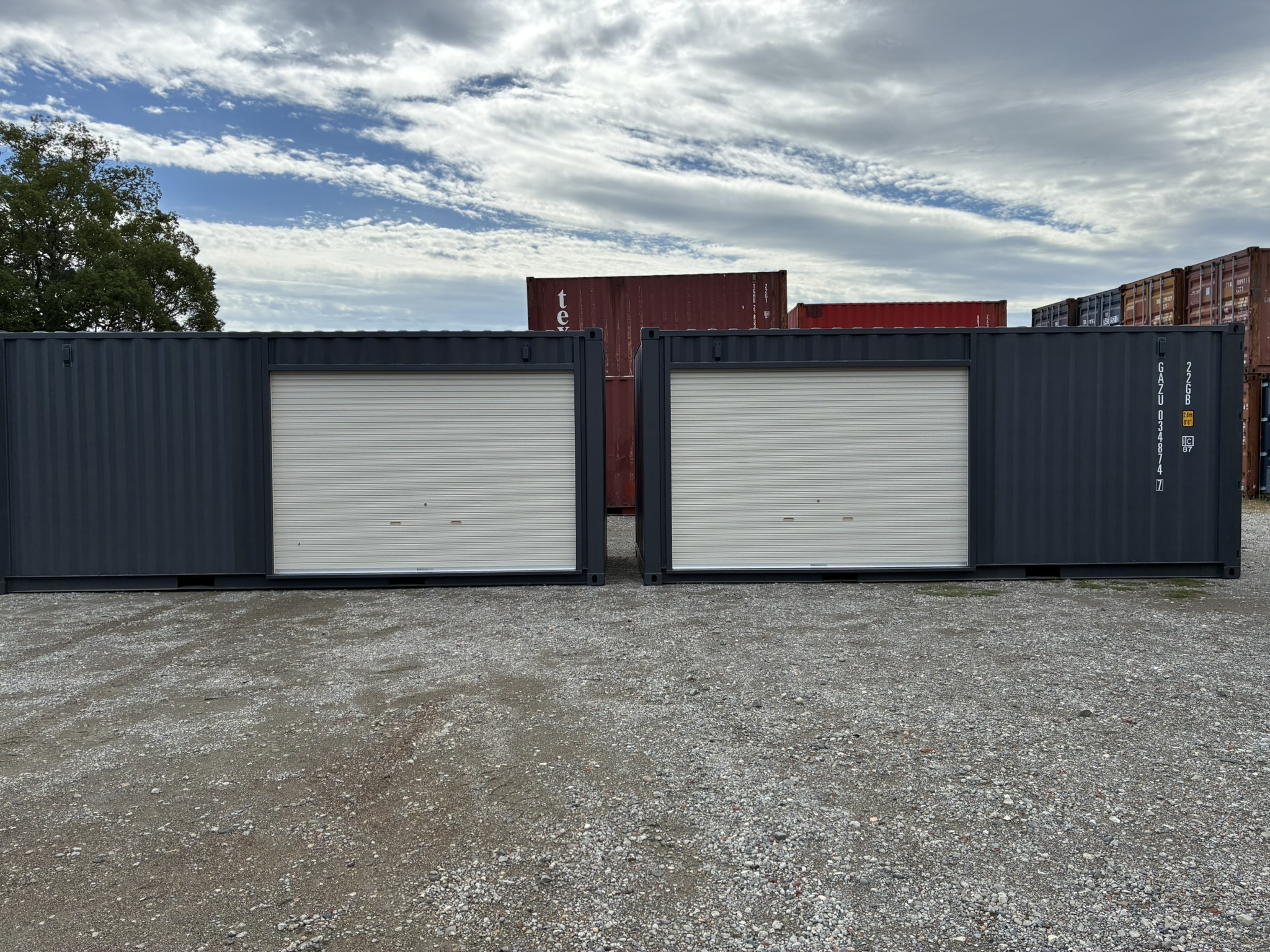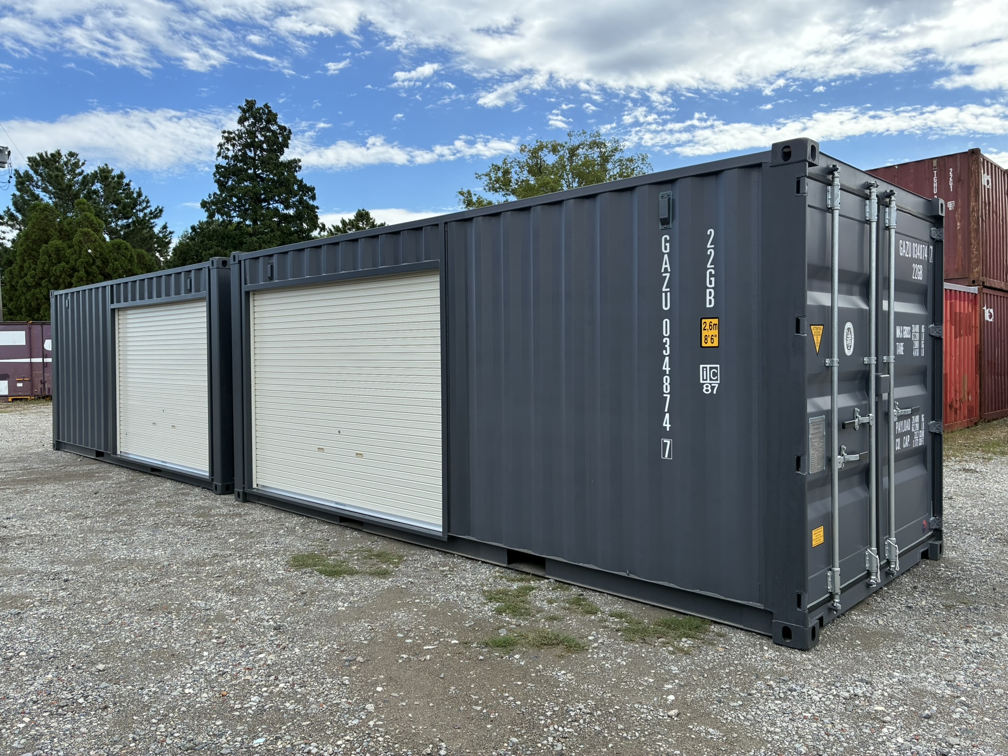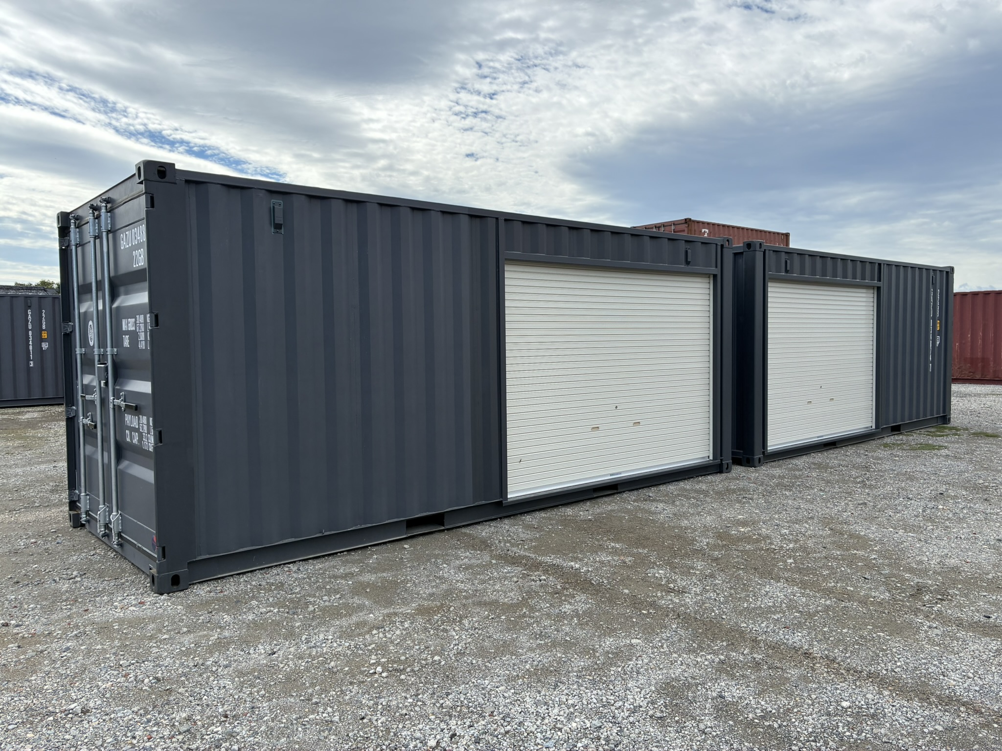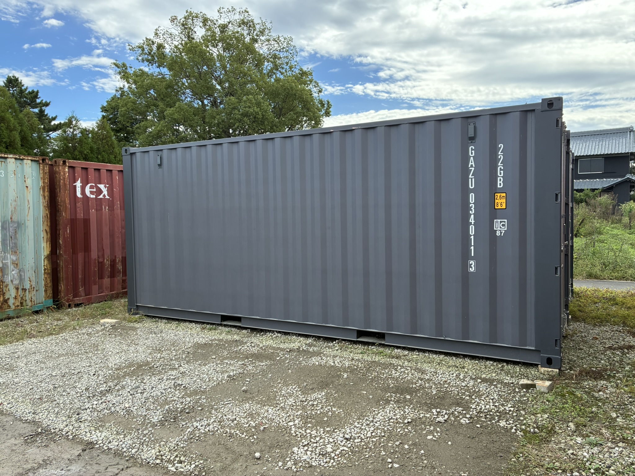20フィート新造コンテナ×3台ご購入いただきました。 そのうち2台にシャッターを取り付けました。 シャッターはご指定の位置に取り付け可能です。