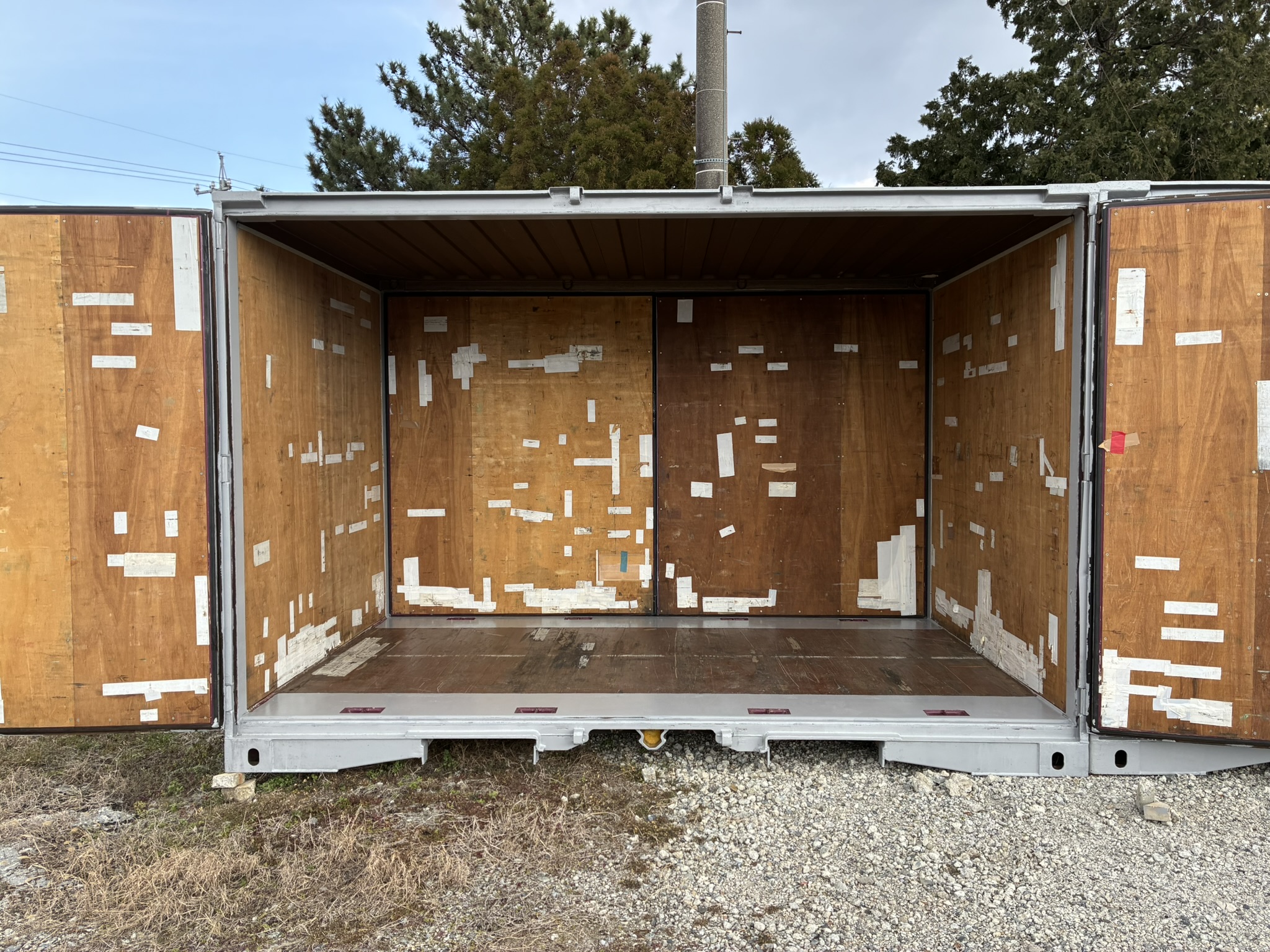 コンパクトな12フィートサイズで、資材置場や現場用倉庫、農機具・工具類の保管など、さまざまな用途に使いやすいコンテナです。
